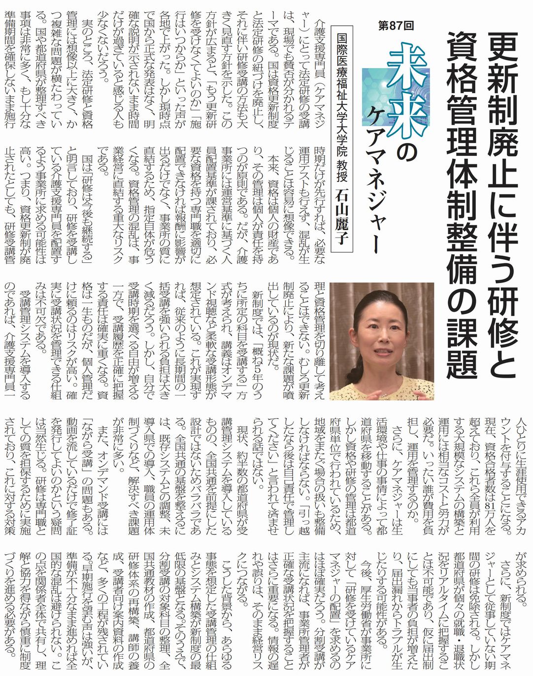 未来のケアマネジャー87 更新制廃止に伴う研修と資格管理体制整備の課題