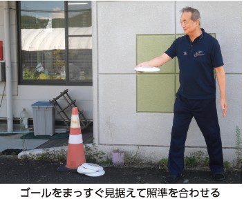 フライングディスク競技の魅力を「年齢や障がいの有無にかかわらず、ディスクさえ投げられれば誰でもできる。ハンデはいらない」と語る蔵澄さん。チームのほとんどが初心者といえど、勝負の行方は分からない。