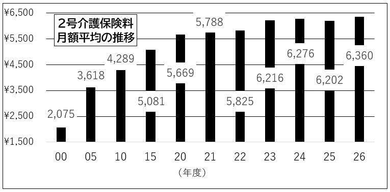 厚労省は3月9日の介護保険部会で、2026年度に40~64歳が負担する2号介護保険料の1人あたり平均見込額を、月額6360円(前年度比158円増、年額7万6320円)と示した。