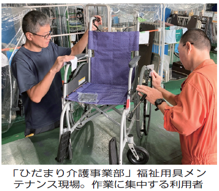 同法人は①生活介護(定員12人)②就労移行支援(9人)③自立訓練(9人)④就労継続支援B型(40人)⑤就労定着支援(30人)――の5サービスを展開。就労B型は▽ひだまり介護事業部▽介護用マットレス洗浄▽厨房班▽電化製品解体――の4部門で、本人の希望や障がい特性に応じた作業を割り当てる。「環境を整え、必要な配慮を行い、作業切り出しの工夫をし続ければ、障がいがあっても生産性の高い仕事を担えます」と土屋さんは説明する。