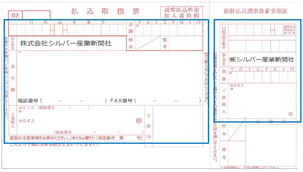 ①弊社より必要事項が記入された郵便振替用紙(「振込取扱票」)を送付いたします。