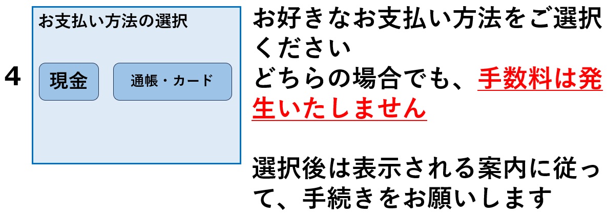 ・手数料:手数料が発生する場合がございます。払込取扱票を使わない場合の手数料については、お客様様のご負担となります